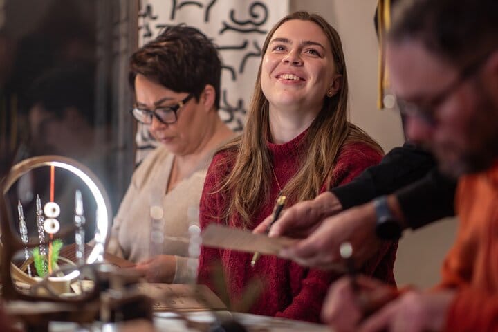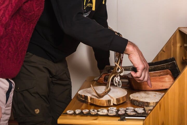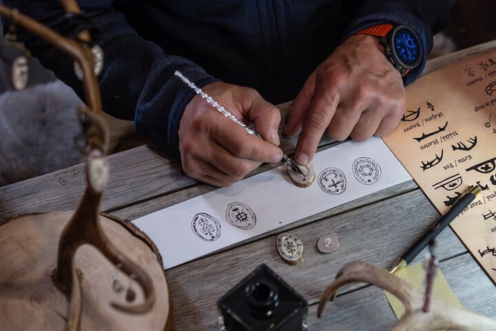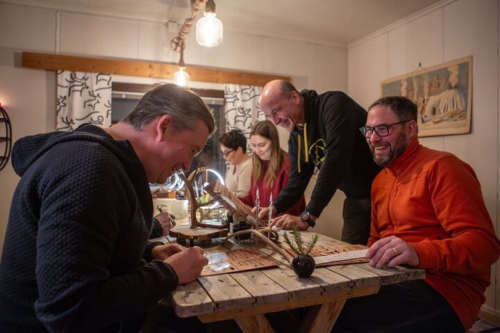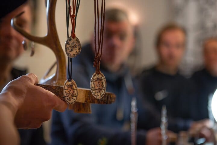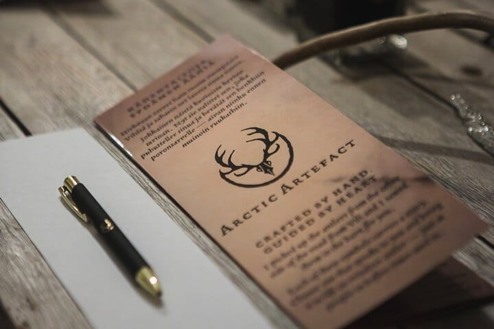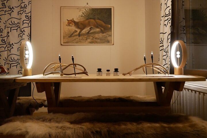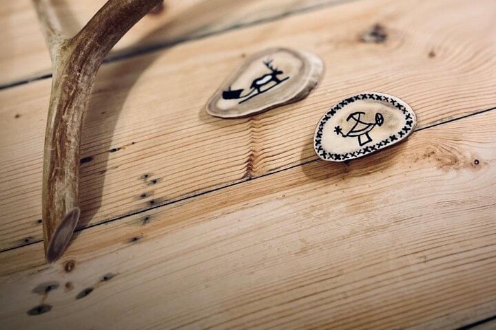 Step into a cozy candlelit space filled with the scent of spruce and the soft textures of reindeer hides. Here, surrounded by Arctic mystique, you will craft two personalized magnets onto reindeer antler. Choose a symbol that resonates with you — perhaps an ancient motif symbolizing nature, an animal, or a trait you too possess. Before inking your design, you’ll practice on paper, getting comfortable with the symbol. Then, with steady hands, you’ll bring your vision to life with a glass pen and ink on the antler itself. The final touch is a protective varnish ensuring your creation lasts for years to come. This isn’t just a craft — it’s a moment to slow down, create, and take home a piece of the Arctic’s timeless spirit.